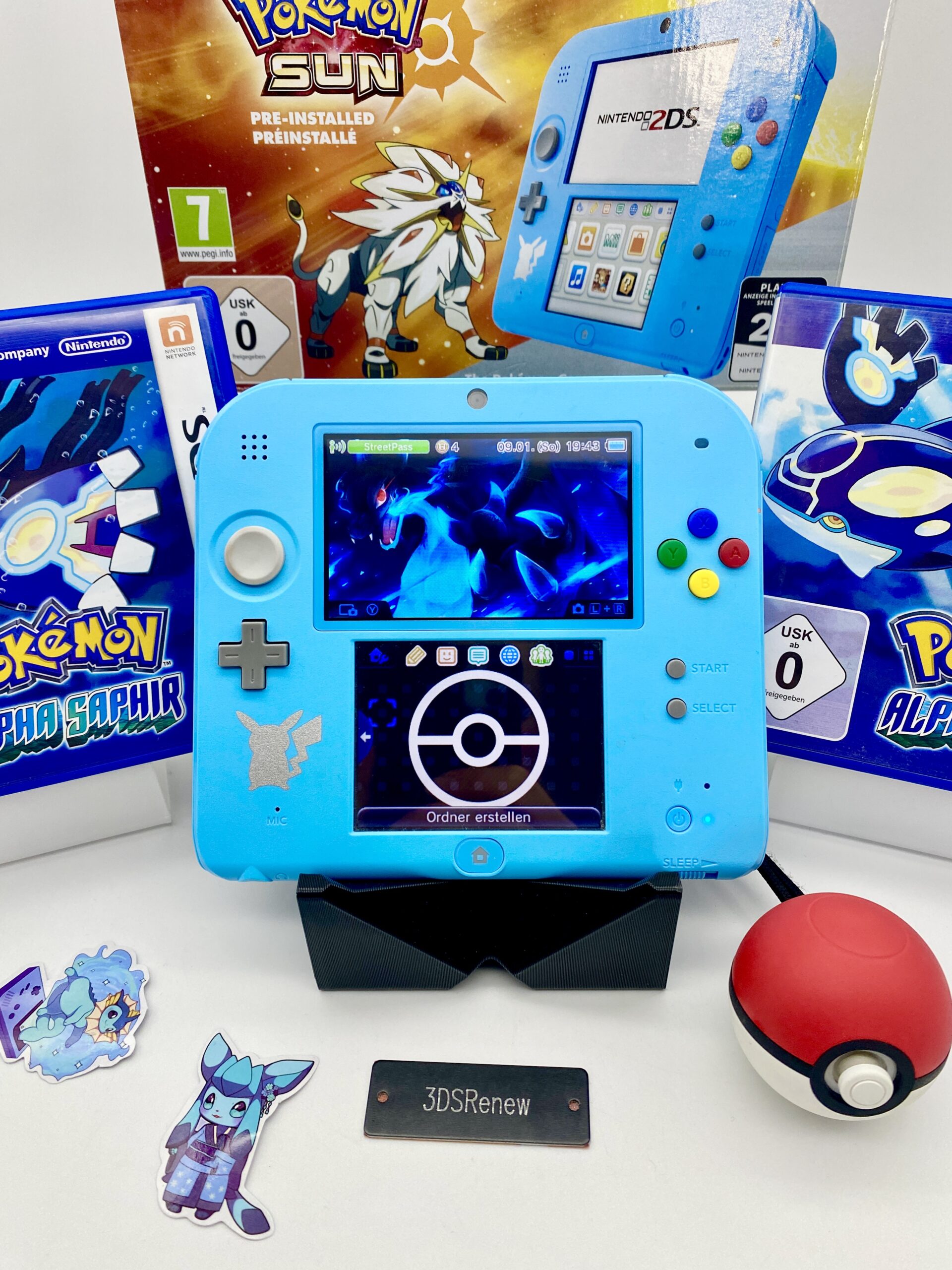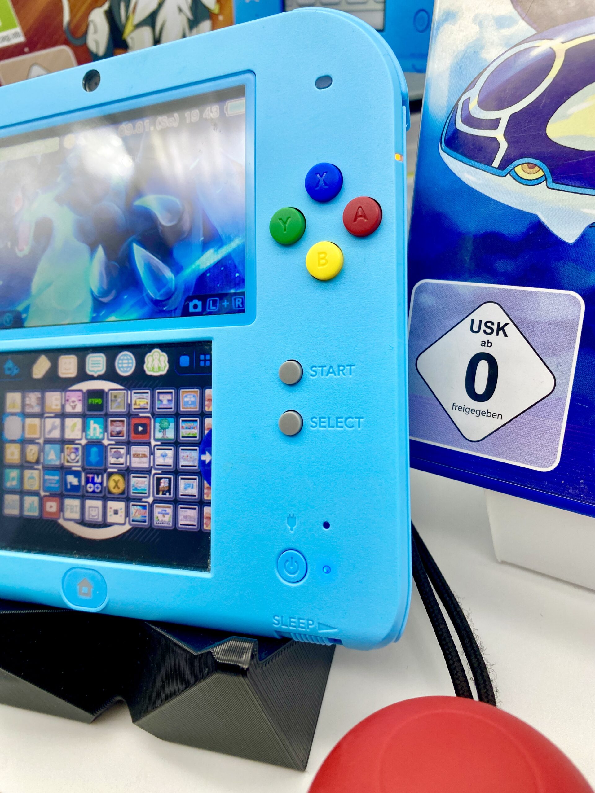 Die Konsole ist in einem sehr Guten Zustand. Der 2Ds liegt angenehm in der Hand und lässt sich gut mitnehmen. Alle Spiele sind fest auf der Konsole installiert und es ist noch kein Nintendo Account verbunden.