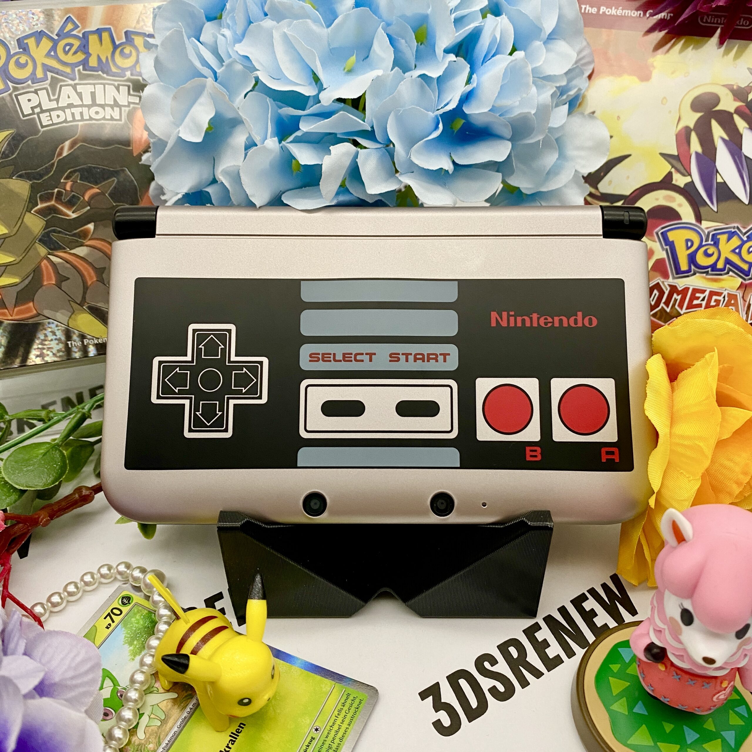 Der Nintendo 3DS XL in schwarz ist mit verschiedenen Covers kompatibel. Durch sein simples Design harmoniert der 3ds mit verschiedenen Farben. Hier wurden NES Shells verbaut, diese verleihen der Konsole einen klassischen touch.