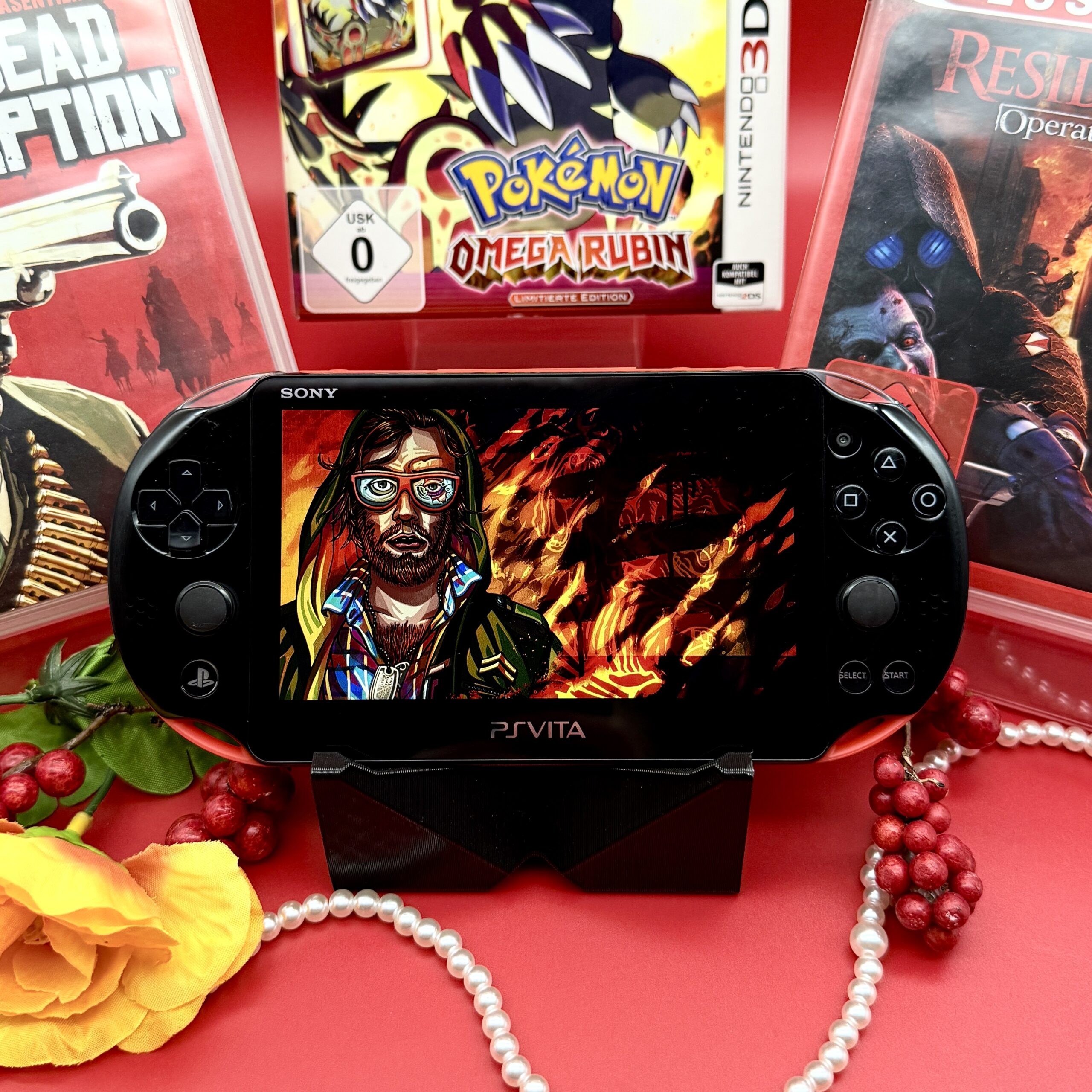 Die Play Station Vita 2000 ist hier als schwarz rote Option verfügbar. Sie liegt geschmeidig in der Hand und zeichnet sich durch ihr aerodynamisches Design aus. Die Konsole ist Leistungsstärker als der 3DS da sie neuer ist, somit kann man auch größere Games mit einer höheren Bild Qualität genießen. Dazu ist die Speichermöglichkeit von 128 GB – 512 GB sehr groß.